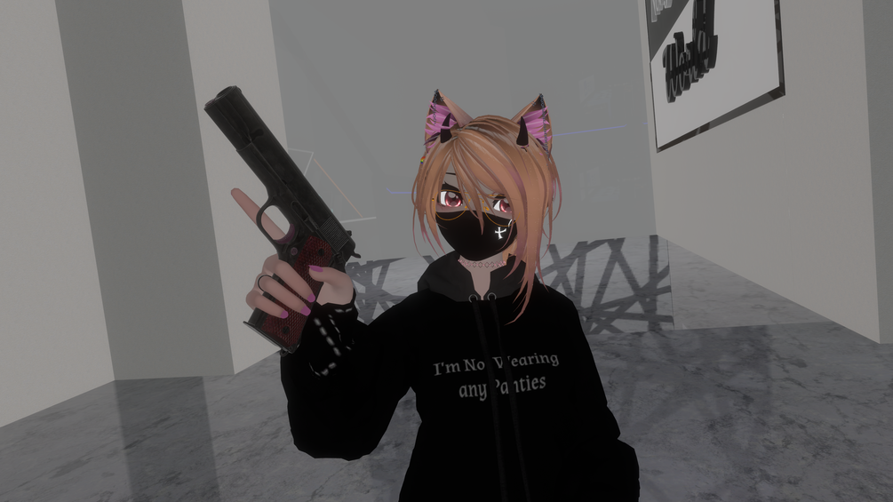 When the game is enabled (via your expressions menus) you can shoot and be shot! On the first hit, a health-bar will appear on the gun. For each subsequent hit, health will be deducted. When your health reaches 0 your avatar will do the die emote for 10 seconds.